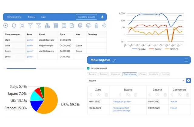 Платформа быстро внедряется в IT-инфраструктуру компании и не конфликтует с другим ПО. Интеграм поддерживает обмен данными с большинством IT-продуктов, требующих сложной установки, таких как CRM или модули 1С, и может взять на себя часть их функционала.